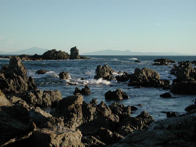 Keywords: South Island from Sinclair Head.jpg Rocky shore at Sinclair Head looking across Cook Strait towards the South Island Own 2006-06-10 Pseudopanax at http //en wikipedia org en wikipedia 41 21 43 S 174 43 0 E Wellington Region Coasts of New Zealand Cook Strait