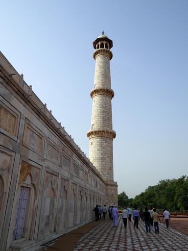 Keywords: south-west tower minaret architecture taj mahal complex white marble agra india