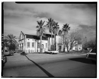 | Keywords: Southern Pacific Railroad Passenger Depot TX NRHP 78002903.jpg 78002903 Historic American Buildings Survey ”HABS image Creator s Historic American Buildings Survey creator Date Created/Published Documentation compiled after 1933 Medium Photo s 16 Data Page s 10 Reproduction Number --- Rights Advisory No known restrictions on images made by the U S Government; images copied from other sources may be restricted http //www loc gov/rr/print/res/114_habs html Call Number HABS TEX 31-BROWN 15- Repository Library of Congress Prints and Photographs Division Washington D C 20540 USA http //hdl loc gov/loc pnp/pp print ;Notes ;Significance The Southern Pacific RR Passenger Station built ca 1929 is a particularly fine example of Spanish Mission Revival architecture Its sharply defined form and open site make it one of Brownsville's most visually impressive landmarks National Register November 17 1978 as Southern Pacific Railroad Passenger Depot Inoperative 1955 Adaptive re-use sought by city Unprocessed Field note material exists for this structure FN-81 Survey number HABS TX-3284 Building/structure dates ca 1929 Initial Construction National Register of Historic Places NRIS Number 78002903 Subjects railroad stations Place Texas -- Cameron County -- Brownsville -- Latitude/Longitude 25 90139 -97 49722 Collections Historic American Buildings Survey/Historic American Engineering Record/Historic American Landscapes Survey Part of Historic American Buildings Survey Library of Congress Bookmark This Record http //www loc gov/pictures/item/tx0124/ 2011-12-29 LOC http //lcweb2 loc gov/pnp/habshaer/tx/tx0100/tx0124/photos/156609pv jpg HABS TEX 31-BROWN 15--3 PD-USGov Uploaded with UploadWizard Former Southern Pacific Railroad stations Rail stations on the National Register of Historic Places in Texas Arecaceae in Texas National Register of Historic Places in Brownsville Texas Historic American Buildings Survey of Texas Black and white photographs of Texas Black and white photographs of buildings |