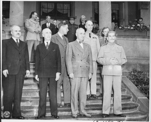 | Keywords: Soviet leader Josef Stalin meets President Truman for the first time at the "Little White House," the residence of... - NARA - 198843.tif Scope and content General notes 198843 Local identifier National Archives and Records Administration Office of Presidential Libraries Harry S Truman Library 04/01/1985 - Harry S Truman Library NLHST 500 West U S Highway 24 Independence MO 64050-1798 1945-07-17 Record group Collection HST-AVC Audiovisual Collection 1957 - 2006 Record group ARC 1207 Photographs Relating to the Administration Family and Personal Life of Harry S Truman compiled 1957 - 2004 documenting the period 1849 - 2004 Series ARC 198606 File unit File unit ARC Variant control numbers NAIL Control Number NLT-AVC-PHT-63 1455 76 yes Other versions <gallery> File Soviet_leader_Josef_Stalin_meets_President_Truman_for_the_first_time_at_the_ Little_White_House _the_residence_of _-_NARA_-_198843 tif tif File Soviet_leader_Josef_Stalin_meets_President_Truman_for_the_first_time_at_the_ Little_White_House _the_residence_of _-_NARA_-_198843 jpg jpg </gallery> NARA-cooperation PD-USGov William D Leahy at the Potsdam Conference James Francis Byrnes at the Potsdam Conference Joseph Stalin and Harry S Truman at the Potsdam Conference Vyacheslav Molotov at the Potsdam Conference Charles E Bohlen at the Potsdam Conference NARA TIF images with categorized JPGs |