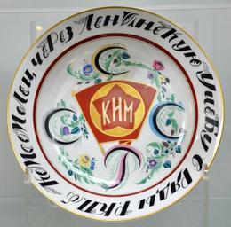 Keywords: Soviet porcelain plate BM MLA 1990 5-6 2.jpg Soviet agitational porcelain Plate Lomonosov Porcelain Factory Leningrad 1925 after a design by Sergei Chekhonin 1878 1936 In the middle the first Komsomol Youth Communist League bage with abbreviation Β«ΠΠΠ Β» The Communist International of Youth Around it letters Β«Π‘Π‘Π‘Π Β» USSR Translation of the inscrption A Komsomolets Komsomol member through Lenin's studies into the ranks of the R C P b Russian Communist party bolsheviks' Π‘ΠΎΠ²Π΅ΡΡΠΊΠΈΠΉ Π°Π³ΠΈΡΠ°ΡΠΈΠΎΠ½Π½ΡΠΉ ΡΠ°Ρ ΡΠΎΡ Π’Π°Ρ Π΅Π»ΠΊΠ° ΠΠΎΠΌΠΎΠ½ΠΎΡΠΎΠ²ΡΠΊΠΈΠΉ ΡΠ°Ρ ΡΠΎΡ ΠΎΠ²ΡΠΉ Π·Π°Π²ΠΎΠ΄ 1925 Ρ