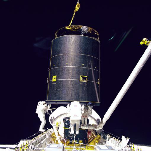 Keywords: space astronauts space-walk repairing module sky gravity less working nasa beautiful