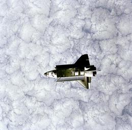Keywords: space shuttle challenger orbiter spacecraft clouds vehicle orbit mission flight