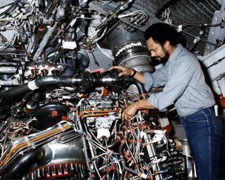 | Keywords: space shuttle main engine spaceshuttlemainengine ssme maintenance A technician performs maintenance on a Space Shuttle Main Engine, (SSME) to prepare it for testing at the John C. Stennis Space Center.  A technician performs maintenance on a Space Shuttle Main Engine, (SSME) to prepare it for testing at the John C. Stennis Space Center.   |