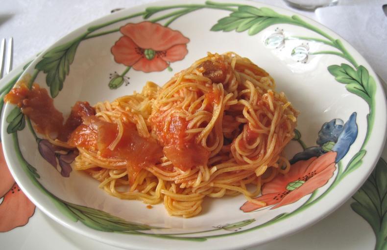 Keywords: spaghetti tomato sauce decorative serving plate