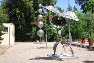 Keywords: spain artist sculpture metal man parasols bowls travel outside