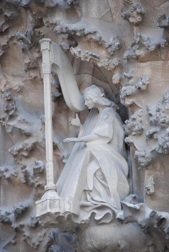 Keywords: spain barcelona gaudi sagrada familia church religion architecture image art sculpture harp woman