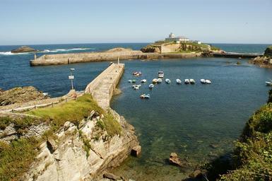 Keywords: spain sea ocean water boats ships sky clouds buildings cliffs rocky rocks summer spring nature outside trees plants island beautiful