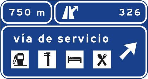 Keywords: Spain traffic signal s266.svg es S-266 Preseñalización en autopista o autovía de una vía de servicio con salida compartida Reglamento General de Circulación del Reino de España Benedicto16 Diagrams of road signs of Spain Road signs with gas station pictogram Road signs in Spanish language
