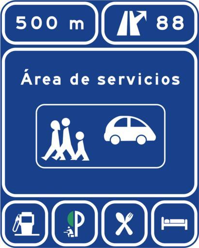 | Keywords: Spain traffic signal s271 1.svg  es S-271 Preseñalización de área de servicio TAL COMO APARECE EN EL REGLAMENTO Reglamento General de Circulación del Reino de España Benedicto16 Diagrams of road signs of Spain Rest areas in Spain Road signs in Spanish language |