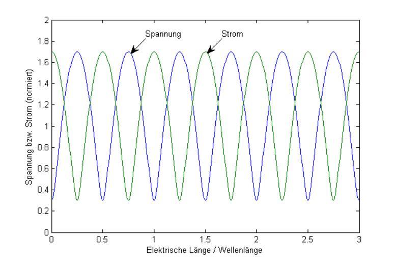 MAKE A MEME View Large Image Spannung Strom am Kabel -07.png Spannungs- und Stromwerte entlang eines Kabels an dessen Ende ein Teil der vorlaufenden Welle mit Reflexionsfaktor -0 7 reflektiert wird Wegen der Gegenphasigkeit ist die gemessene Spannung an den Kabelenden ...
