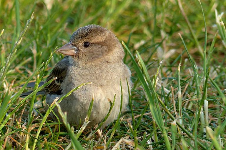 Keywords: sparrow passer domesticus young bird foraging in the grass