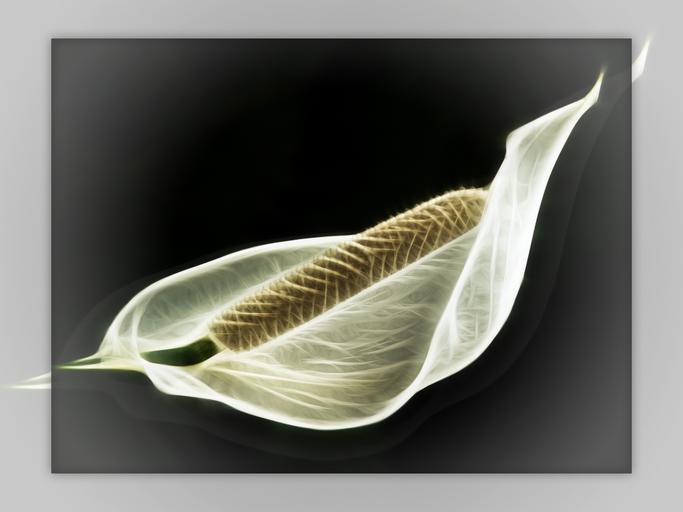 Keywords: spathiphyllum flower white plant filigree digital art artwork framed shadowed nature calla