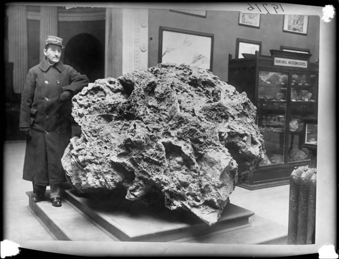 | Keywords: field columbian museum chicago blackandwhite monochrome black and white Security guard in uniform standing on wooden platform with his arm resting on the specimen of Smithsonite from the Morning Star Mine, Oklahoma. Iron Ores, Western States exhibits in view in background. Field Columbian Museum. 1906. Original size and material: 6 1/2 x 8 1/2 inch glass negative Digital Identifier: CSGEO19716 Part of the Illinois Urban Landscapes Project: www.fieldmuseum.org/urbanlandscapes/ Security guard in uniform standing on wooden platform with his arm resting on the specimen of Smithsonite from the Morning Star Mine, Oklahoma. Iron Ores, Western States exhibits in view in background. Field Columbian Museum. 1906. Original size and material: 6 1/2 x 8 1/2 inch glass negative Digital Identifier: CSGEO19716 Part of the Illinois Urban Landscapes Project: www.fieldmuseum.org/urbanlandscapes/ |
