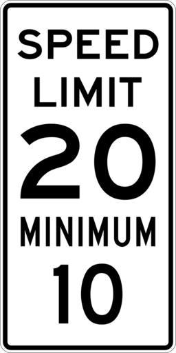 | Keywords: Speed Limit 20 Minimum 10 sign.svg 600 mm by 1200 mm 24 in by 48 in Combined Speed Limit sign made to the specifications of the http //mutcd fhwa dot gov/SHSm/regulatory pdf 2004 edition of Standard Highway Signs sign R2-4a Uses the http //www triskele com/fonts/index html Roadgeek 2005 fonts United States law does not permit the copyrighting of typeface designs and the fonts are meant to be copies of a U S Government-produced work anyway The outside border has a width of 1 1 mm and a color of black so it shows up; in reality signs have no outside border own Ltljltlj User Ltljltlj/Template minimum R2-4 - Minimum Speed 2010 Number 10 on speed limit road signs 20 number |
