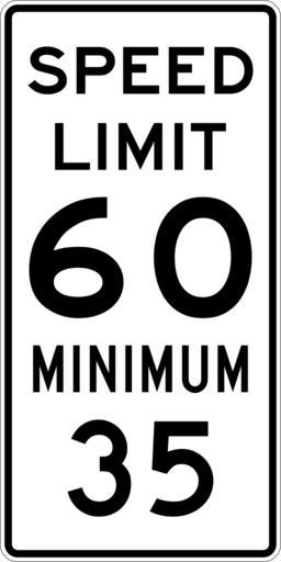 | Keywords: Speed Limit 60 Minimum 35 sign.svg 600 mm by 1200 mm 24 in by 48 in Combined Speed Limit sign made to the specifications of the http //mutcd fhwa dot gov/SHSm/regulatory pdf 2004 edition of Standard Highway Signs sign R2-4a Uses the http //www triskele com/fonts/index html Roadgeek 2005 fonts United States law does not permit the copyrighting of typeface designs and the fonts are meant to be copies of a U S Government-produced work anyway The outside border has a width of 1 1 mm and a color of black so it shows up; in reality signs have no outside border own Ltljltlj User Ltljltlj/Template minimum R2-4 - Minimum Speed 6035 60 number 35 number |