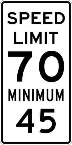 | Keywords: Speed Limit 70 Minimum 45 sign.svg 600 mm by 1200 mm 24 in by 48 in Combined Speed Limit sign made to the specifications of the http //mutcd fhwa dot gov/SHSm/regulatory pdf 2004 edition of Standard Highway Signs sign R2-4a Uses the http //www triskele com/fonts/index html Roadgeek 2005 fonts United States law does not permit the copyrighting of typeface designs and the fonts are meant to be copies of a U S Government-produced work anyway The outside border has a width of 1 1 mm and a color of black so it shows up; in reality signs have no outside border own Ltljltlj User Ltljltlj/Template minimum R2-4 - Minimum Speed 7045 45 number 70 number |