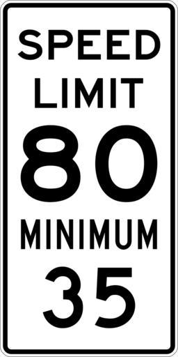 | Keywords: Speed Limit 80 Minimum 35 sign.svg 600 mm by 1200 mm 24 in by 48 in Combined Speed Limit sign made to the specifications of the http //mutcd fhwa dot gov/SHSm/regulatory pdf 2004 edition of Standard Highway Signs sign R2-4a Uses the http //www triskele com/fonts/index html Roadgeek 2005 fonts United States law does not permit the copyrighting of typeface designs and the fonts are meant to be copies of a U S Government-produced work anyway The outside border has a width of 1 1 mm and a color of black so it shows up; in reality signs have no outside border own Ltljltlj User Ltljltlj/Template minimum R2-4 - Minimum Speed 8035 35 number 80 number |