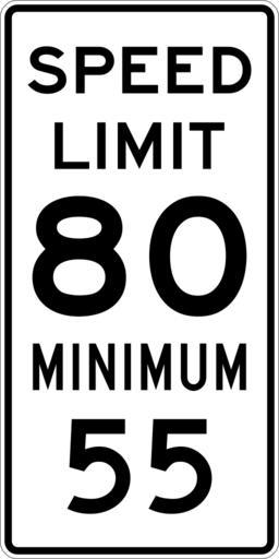 | Keywords: Speed Limit 80 Minimum 55 sign.svg 600 mm by 1200 mm 24 in by 48 in Combined Speed Limit sign made to the specifications of the http //mutcd fhwa dot gov/SHSm/regulatory pdf 2004 edition of Standard Highway Signs sign R2-4a Uses the http //www triskele com/fonts/index html Roadgeek 2005 fonts United States law does not permit the copyrighting of typeface designs and the fonts are meant to be copies of a U S Government-produced work anyway The outside border has a width of 1 1 mm and a color of black so it shows up; in reality signs have no outside border own Ltljltlj User Ltljltlj/Template minimum R2-4 - Minimum Speed 8055 55 number 80 number |