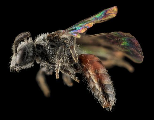 Keywords: bug bugs bee bees pollinator pollinators animal animals animalia arthropod arthropods arthropoda insect insects insecta hymenoptera aculeata anthophila apoidea halictidae halictid halictid bee halictidbee sweat bee sweatbee sweat bees sweatbees halictinae halictini sphecodes taxonomy:binomial=sphecodes brachycephalus taxonomy:binomial=sphecodesbrachycephalus sphecodes brachycephalus sphecodesbrachycephalus biml usgs droege north carolina northcarolina sandhills usgsbiml black background photo border depth of field Another Heather Campbell collected bee from the Sandhills, this one a nest parasite, likely on something in the genus Lasioglossum, a very small bee...Check out the WIPs in the wing (Wing Interference Patterns) quite lovely .... these usually occur only in the most delicate of bees wings. Canon Mark II 5D, Zerene Stacker, Photographer: Sam Droege, 65mm Canon MP-E 1-5X macro lens, Twin Macro Flash, F5.0, ISO 100, Shutter Speed 200 Another Heather Campbell collected bee from the Sandhills, this one a nest parasite, likely on something in the genus Lasioglossum, a very small bee...Check out the WIPs in the wing (Wing Interference Patterns) quite lovely .... these usually occur only in the most delicate of bees wings. Canon Mark II 5D, Zerene Stacker, Photographer: Sam Droege, 65mm Canon MP-E 1-5X macro lens, Twin Macro Flash, F5.0, ISO 100, Shutter Speed 200 |
