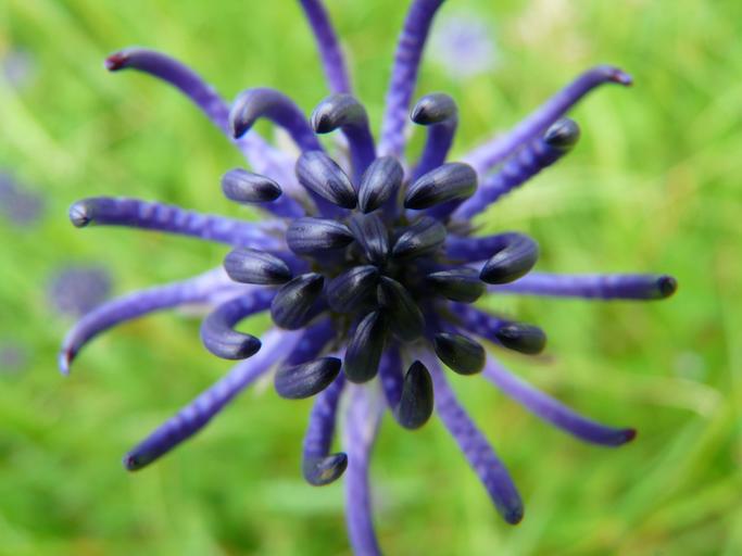 Keywords: spherical devil's claw devil's claw bell flower greenhouse flower blossom bloom meadow nautur blue phyteuma orbiculare phyteuma campanulaceae macro close purple dark blue dark purple
