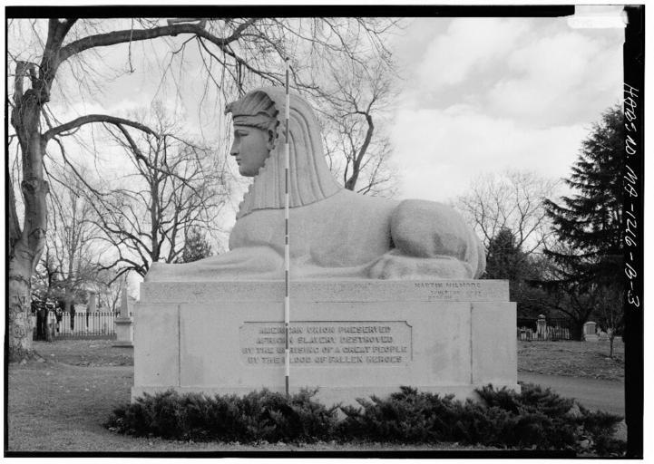 | Keywords: Sphinx by Martin Milmore - 080177pv.jpg A monument to the causes and victory of the Civil War the inscription reads 'American Union Preserved African slavery destroyed by the uprising of a great people by the blood of fallen heroes' An interesting and unique piece of sculpture Historic American Buildings Survey HABS Library of Congress Prints and Photograph Division Washington D C 20540 USA Survey number HABS MA-1216-B http //hdl loc gov/loc pnp/hhh ma1378 December 12 1987 1967 per HABS record Jack E Boucher Public domain - Origianl work of the US Federal Government Sphinx by Martin Milmore PD-USGov |