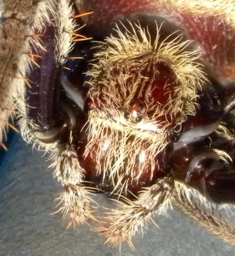 Keywords: Spider, Garden Orb Weaver3 (Public Domain).JPG en Head/front of common garden orb weaving spider or garden orb weaver spider Eriophora transmarina Common in Australia This one was found in Central Queensland own Vicki Nunn 2010-12-16 Cc-zero Eriophora transmarina Araneae eyes |