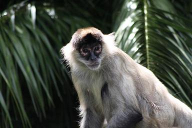Keywords: spider monkey primate nature wildlife portrait looking curious hairy cute palm trees