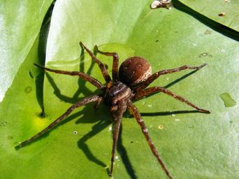 Keywords: Spider on the yellow pond-lily leaf.JPG ru Паук на листе кубышки жёлтой возле бе ега озе а Шелубей Теньгушевский айон о довии own WildBoar 2011-08-10 Cc-zero Unidentified Dolomedes