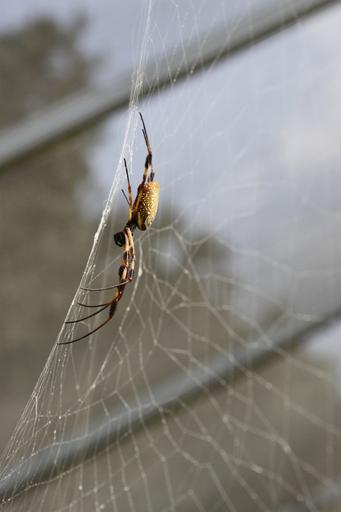 Keywords: spider pest insect bug creepy crawly orange black yellow web bush garden