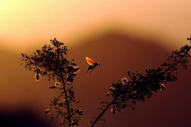 Keywords: spider wasp tarantula hawk insect outdoors flying plant wildlife nature bug flower evening sunset silhouettes