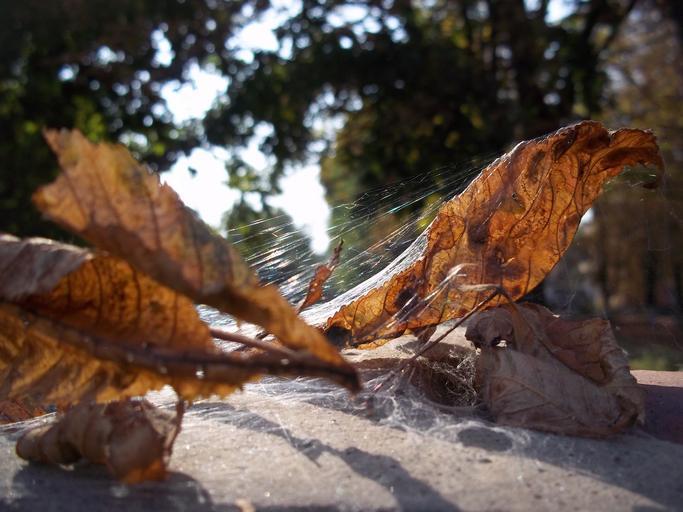 Keywords: spider web sheet magic dry lleaf brown leaves autumn