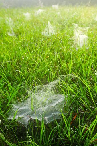 Keywords: spider webs grass dew drops droplets wet green nature web natural cobweb numerous several