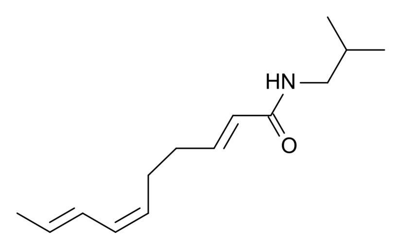 Keywords: Spilanthol skeletal.svg Acmella oleracea own Anypodetos 2011-08-05 BKchem 001 -check Fatty acid amides Cc-zero