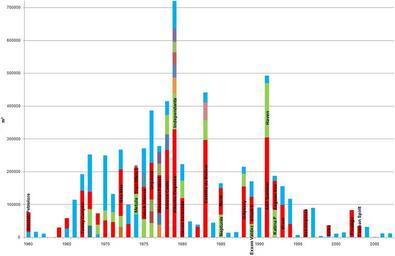 | Keywords: Spill Volume.PNG en Oil spills by tankers; In red the largest spill that year by one tanker In lightblue all spills smaller then 30000 m3 combined Other colours single spills larger then 30000 m3 own based on http //www c4tx org/ctx/job/cdb/prod/search html CTX Casualty Database BoH 2008-09-06 Based on spills of more then 1000 m3 in the http //www c4tx org/ctx/job/cdb/prod/search html CTX Casualty Database Oil tankers | ||||