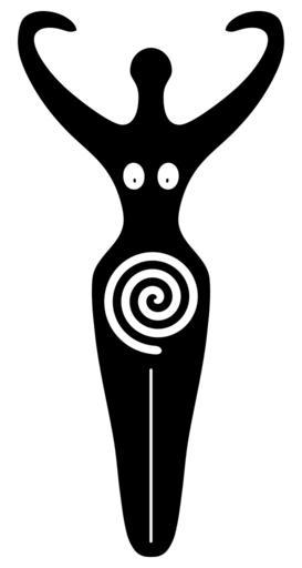 | Keywords: Spiral Goddess symbol neo-pagan.svg A simple black-and-white version of the Spiral Goddess symbol of modern neo-paganism full-height variant I started with Image PredynasticFemaleFigurine BrooklynMuseum png rotated that photo so that the statuette was vertical did a vector trace of the outline of the statuette averaged the left and right halves of the vector outline to impose bilateral symmetry added a head to the statuette outline further cleaned-up and manipulated the statuette vector outline to improve appearance and added a white Archimedean spiral and a legs divider line cf Image Egypte louvre 314 jpg within the statuette outline August 2008 greatly transformed silhouette of early B C predynastic Egyptian figurine AnonMoos PD Image Spiral_Goddess_symbol_neo-pagan_2 svg shortened <br/> See also File Simplified-stylized Minoan snake goddess symbol svg for a different modern goddess symbol based on an ancient figurine See official site for the statuette at http //www brooklynmuseum org/opencollection/objects/4225/Female_Figure The spiral was generated from the following PostScript vector source code <pre> 333 360 translate/pi 3 1415926535898 def/R 180 pi div def/W 15 def/U 3 26 def/D 180 def/C 54 pi div def/L /Y 0 def 0 W U 360 mul 7 dup repeat D add cos/H exch def D add sin/G exch def H mul R div/Q exch def G mul R div/E exch def Q C mul/x exch def E C mul/y exch def/S G Q add H E sub div def G 0 gt G 0 eq H -1 eq and or /F -1 def /F 1 def ifelse/A exch def A 49 294 lt A 180 gt A 196 274 lt and or /F F neg def if W sub dup dup dup D add cos C mul mul R div/M exch def D add sin C mul mul R div/N exch def W add dup dup dup D add cos C mul mul R div/O exch def D add sin C mul mul R div/V exch def/P x M sub dup mul y N sub dup mul add sqrt pi div def/Z x O sub dup mul y V sub dup mul add sqrt pi div def/B S S mul 1 add sqrt def 0 eq 0 0 moveto/X D cos Z mul def X Y x 1 F mul B div P mul sub y S F mul B div P mul sub x y curveto /X x 1 F mul B div Z mul add def/Y y S F mul B div Z mul add def ifelse for stroke def L/U 2 76 def/D 0 def L showpage EOF</pre> Spiral symbols Goddess movement - Thealogy symbols Images with PostScript source code |