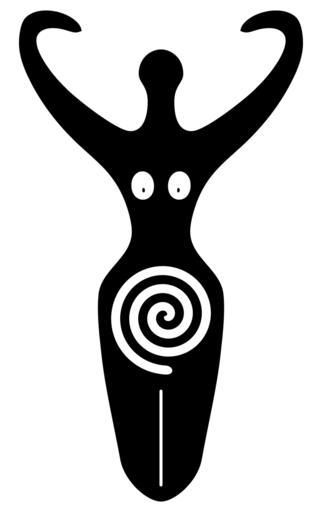 | Keywords: Spiral Goddess symbol neo-pagan 2.svg A simple black-and-white version of the Spiral Goddess symbol of modern neo-paganism this variant with shortened vertical height I started with Image PredynasticFemaleFigurine BrooklynMuseum png rotated that photo so that the statuette was vertical did a vector trace of the outline of the statuette averaged the left and right halves of the vector outline to impose bilateral symmetry added a head to the statuette outline further cleaned-up and manipulated the statuette vector outline to improve appearance and added a white Archimedean spiral and a legs divider line cf Image Egypte louvre 314 jpg within the statuette outline August 2008 greatly transformed silhouette of early B C predynastic Egyptian figurine AnonMoos PD Image Spiral_Goddess_symbol_neo-pagan svg full-height <br/> See also File Simplified-stylized Minoan snake goddess symbol svg for a different modern goddess symbol based on an ancient figurine See official site for the statuette at http //www brooklynmuseum org/opencollection/objects/4225/Female_Figure The spiral was generated from the following PostScript vector source code <pre> 333 360 translate/pi 3 1415926535898 def/R 180 pi div def/W 15 def/U 3 26 def/D 180 def/C 54 pi div def/L /Y 0 def 0 W U 360 mul 7 dup repeat D add cos/H exch def D add sin/G exch def H mul R div/Q exch def G mul R div/E exch def Q C mul/x exch def E C mul/y exch def/S G Q add H E sub div def G 0 gt G 0 eq H -1 eq and or /F -1 def /F 1 def ifelse/A exch def A 49 294 lt A 180 gt A 196 274 lt and or /F F neg def if W sub dup dup dup D add cos C mul mul R div/M exch def D add sin C mul mul R div/N exch def W add dup dup dup D add cos C mul mul R div/O exch def D add sin C mul mul R div/V exch def/P x M sub dup mul y N sub dup mul add sqrt pi div def/Z x O sub dup mul y V sub dup mul add sqrt pi div def/B S S mul 1 add sqrt def 0 eq 0 0 moveto/X D cos Z mul def X Y x 1 F mul B div P mul sub y S F mul B div P mul sub x y curveto /X x 1 F mul B div Z mul add def/Y y S F mul B div Z mul add def ifelse for stroke def L/U 2 76 def/D 0 def L showpage EOF</pre> Spiral symbols Goddess movement - Thealogy symbols |
