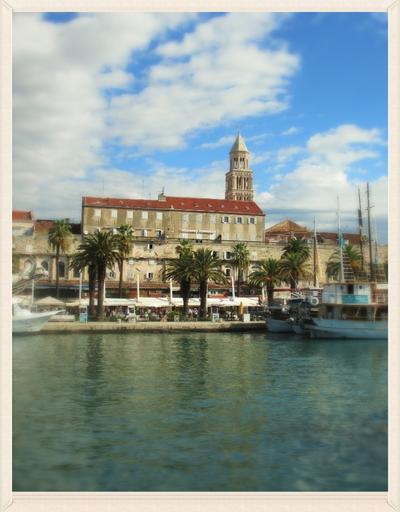 Keywords: port bateaux eglise split croatie ciel mer bleu