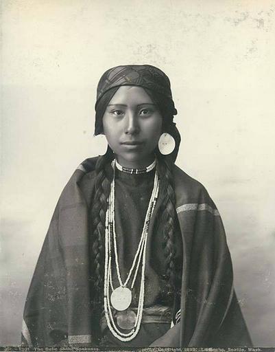 | Keywords: Spokane Indian woman, 1899 (LAROCHE 283).jpeg Photograph Creator Frank La Roche Studio portrait of a young Spokane woman She has a blanket over her shoulders and scarf on her head with shell earrings and beaded necklace Caption on image The belle of the Spokanes Studio portrait Subjects LCSH Portraits-Washington State ; Spokane Indians--Clothing dress depicted place Washington state 1899 Institution University of Washington UWASH-LAROCHE-source accession number laroche 283 PD-old-auto-1923 1936 Information field Order Number LAR141 Spokane tribe 19th-century portrait photographs of sitting women at half length Native American beadwork 1899 in Washington state Black and white photographs |