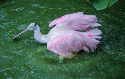Keywords: spoonbill crane roseate spoonbill bird water bird bathing bath