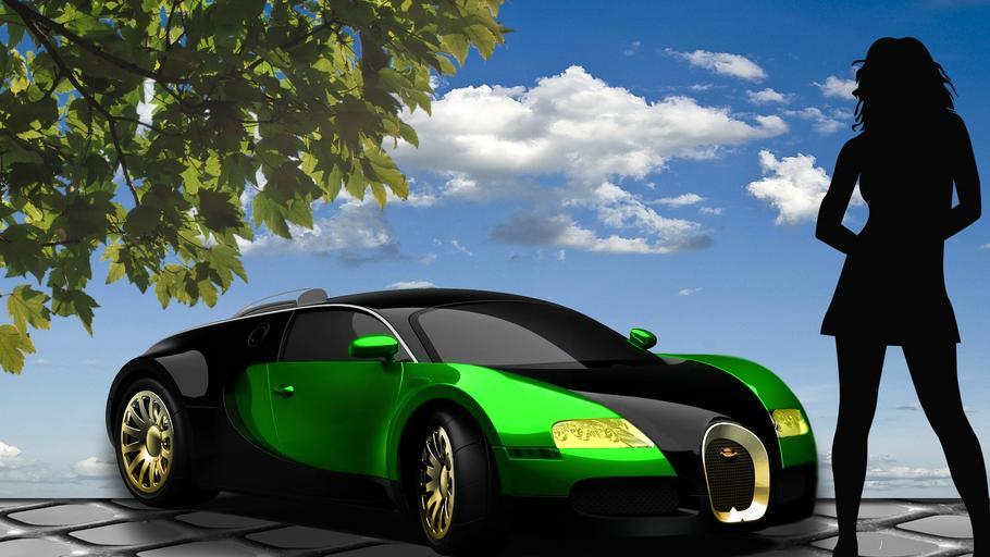 Keywords: sports car sky clouds road luxury auto woman silhuette sexy