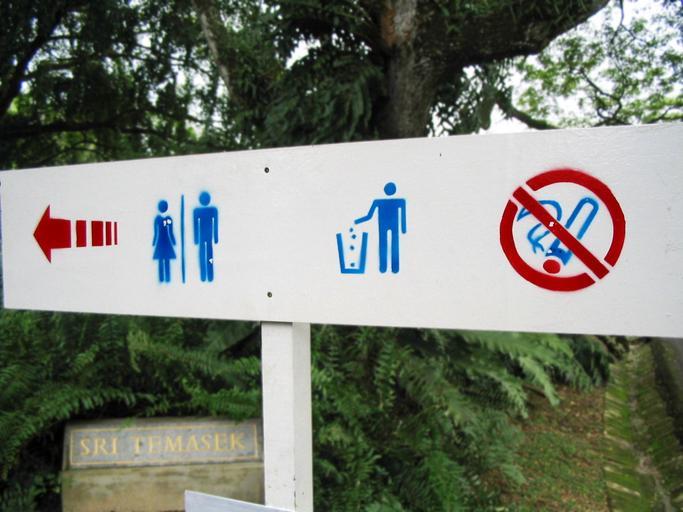 | Keywords: Spray painted directional signs.jpg  en Spray-painted signboard directing visitors to Singapore's Istana to from left the toilets and litterbins and reminding them that smoking is prohibited zh-sg 新加  统 内以喷漆罐喷上的牌子,指向厕 和垃 桶的方向,并提醒到 统 的访客 统   是禁烟的  Own Goh wz 2006-12-31 1 29923 103 84385 Directional signs in Singapore |