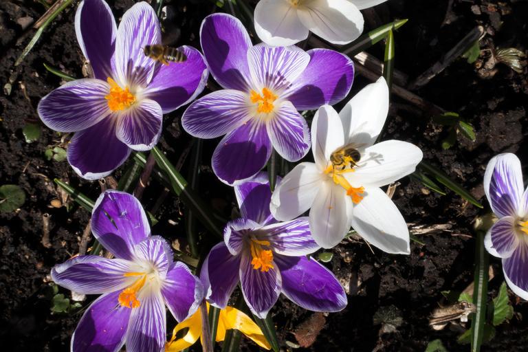 Keywords: spring crocus schwertliliengewaechs spring crocus flower blossom bloom flora bloom nature violet white orange bee sprinkle hum flowers lenz