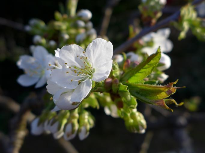Keywords: spring flowers cherry blossom cherry cherry branch white fruit tree plant green close stamens