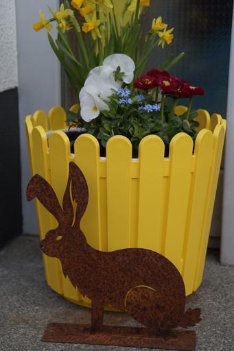 Keywords: spring march april flowers colorful osterglocken easter easter bunny decoration flowerpot plant nature bloom blossom bloom spring awakening easter greeting