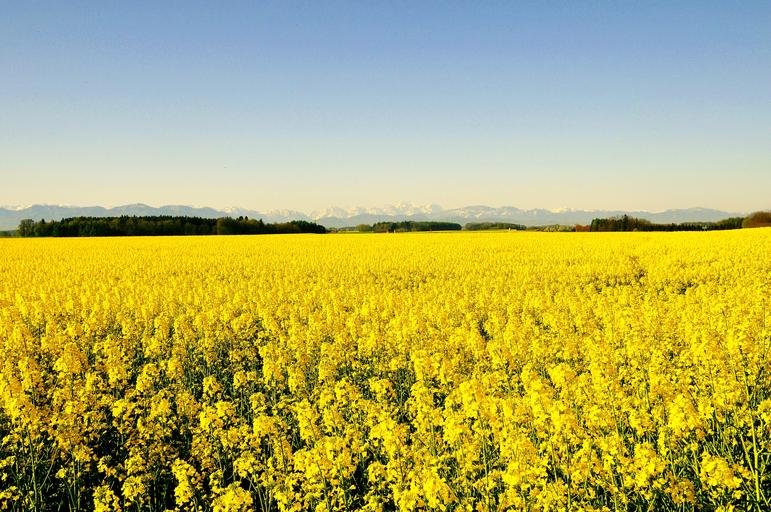 Keywords: spring rape blossom nature blooming rape field bright yellow