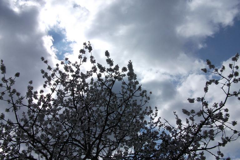 Keywords: spring sky blue nature clouds tree blossom bloom branches landscape sky blue