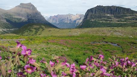 Keywords: glacier montana field photograph back country tree photo meadow clear green spring wildflowers travel calm flower mountains yellow majestic grass