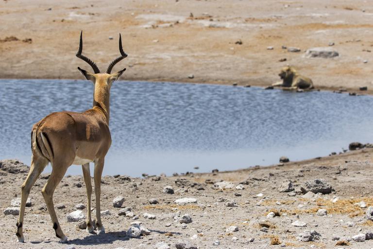 | Keywords: springbok animal lion water hole water hole africa national etosha namibia safari park game reserve wildlife hot waterhole wild desert natural drinking mammal conservation sky sunny adventure impala drive nature herd wilderness dusty drink scene |