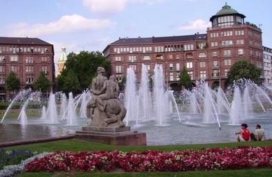 Keywords: Springbrunnen Wasserturm in Mannheim 01.jpg water tower of Mannheim Germany 2006-07-04 own Immanuel Giel 49 29 0 5 N 8 28 35 5 E heading EbN Friedrichsplatz Mannheim